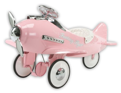 Imagination Flies High in our Retro-Style Pedal Planes Styledfrom the classic originals, these beautiful pedal planes will spark theimagination of any junior pilot or adult collector. The planes are madefrom heavy-guage stamped steel and sport a high gloss powder-coatfinish; they are finished off with attractive decorations, chromedetails and a leather-like padded seat. The pedals will move the planeforward and back while spinning the propeller; and the tearing wheelturns the airplane using the rear wheel -- just like the real thing!Fashioned after our nostalgic Silver Pursuit Plane, the Fantasy Flyer comes with a custom padded seat, bright pink powder coat and shiny chrome detailing. Like all our planes it has a moving spring-loaded propeller, sealed ball bearing drive, non-slip pedals and high-traction tires. It is finished in a long-lasting lead-free powder coat and adorned with original-vintage graphics. Built for the typical youngster ages 2 to 5 years old.Specifications Dimensions - Height (Inches) 26 Dimensions - Length (Inches) 45 Dimensions - Width (Inches) 35 Gross Weight (lbs.) 33 Shipping Carton Dimensions - Height (Inches) 16 Shipping Carton Dimensions - Length (Inches) 48 Shipping Carton Dimensions - Width (Inches) 21 Shipping Carton Gross Weight (lbs.) 46 Finish Lead Free Powder Coat Paint w/Decals Materials Heav